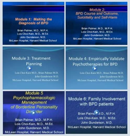 This education series was designed for professionals to learn basic principles for the diagnosis and treatment of Borderline Personality Disorder. It is the result of a collaboration between Drs. Brian Palmer, Lois Choi-Kain, and John Gunderson. It was supported by a grant from the National Education Alliance for Borderline Personality Disorder to help promote its mission to provide education and build awareness on BPD.